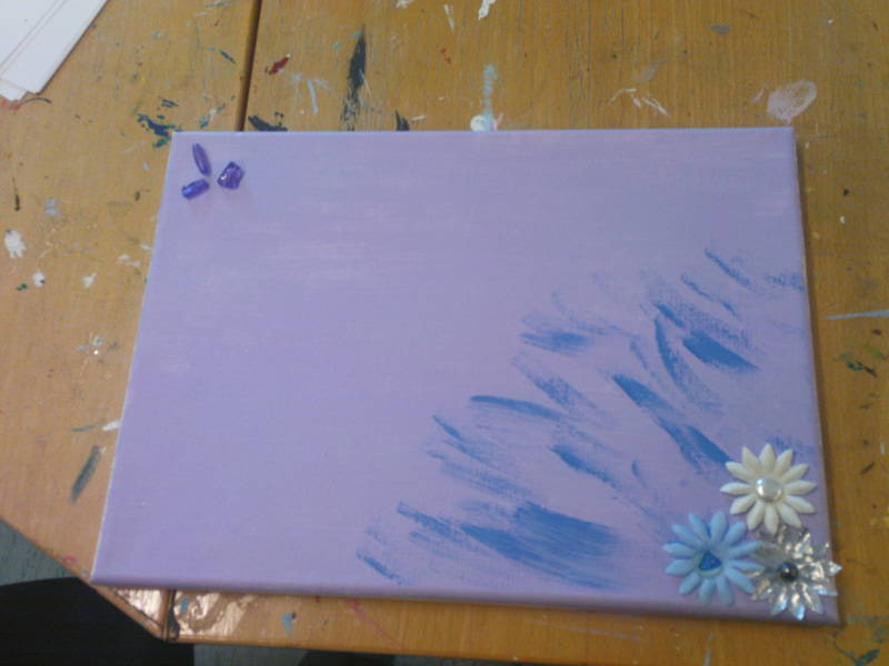 Overskriften er en stor løgn. Jeg har aldri vært kreativ! På ungdomsskolen var mitt verste fag ”kunst&håndverk” Jeg syntes bare ikke det var noe interessant å male, tegne og eksprimentere for å få til flotte statuetter. Istedenfor sying og strikking valgte jeg alltid sløyd. Jeg orket ikke tanken på sitte der å sy korssting, eller tråkke på symaskin. Her på RASP går ikke akkurat dagene av seg selv. Det er jeg som må få dem til å gå. Da jeg fant ut at det var et hobbyrom senest i går kveld – grep jeg sjansen. Jeg kan ikke tro at jeg faktisk bega meg ut på noe jeg i utgangspunktet ikke kan fordra. Hittil har jeg fått meg et stilig dørskilt, en perlet stjerne og et supertøft maleri som jeg laget på lerret. Det er fargerikt med morsomme innspill fra blomster og perler. Malte bare i vill fantasi. Rommet har ikke krympet, så det er fremdeles en masse plass for litt stil og gladfarget interiør. Utrolig hva litt farger kan gjøre med humøret.